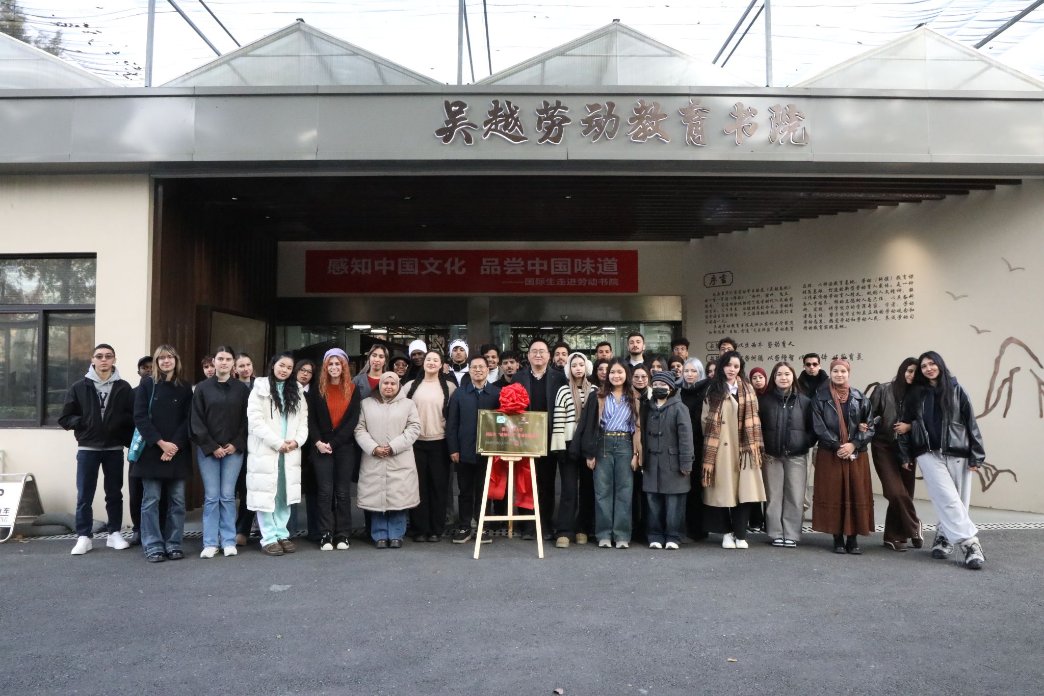 12月4日,浙江农林大学“国际生‘感知中国’劳动实践基地”在吴越劳动教育书院正式揭牌,并同步启动首期文化体验活动。该基地由国际教育学院与后勤服务中心共建,旨在以劳动教育为切口,为国际学生打造沉浸式了解中国国情、体验中华优秀传统文化的实践育人平台。国教学院副院长钱潮,后勤中心党委副书记、纪委书记李曦出席并致辞,双方领导共同为基地揭牌。揭牌仪式由后勤中心综合办、人力部主任张恒主持。