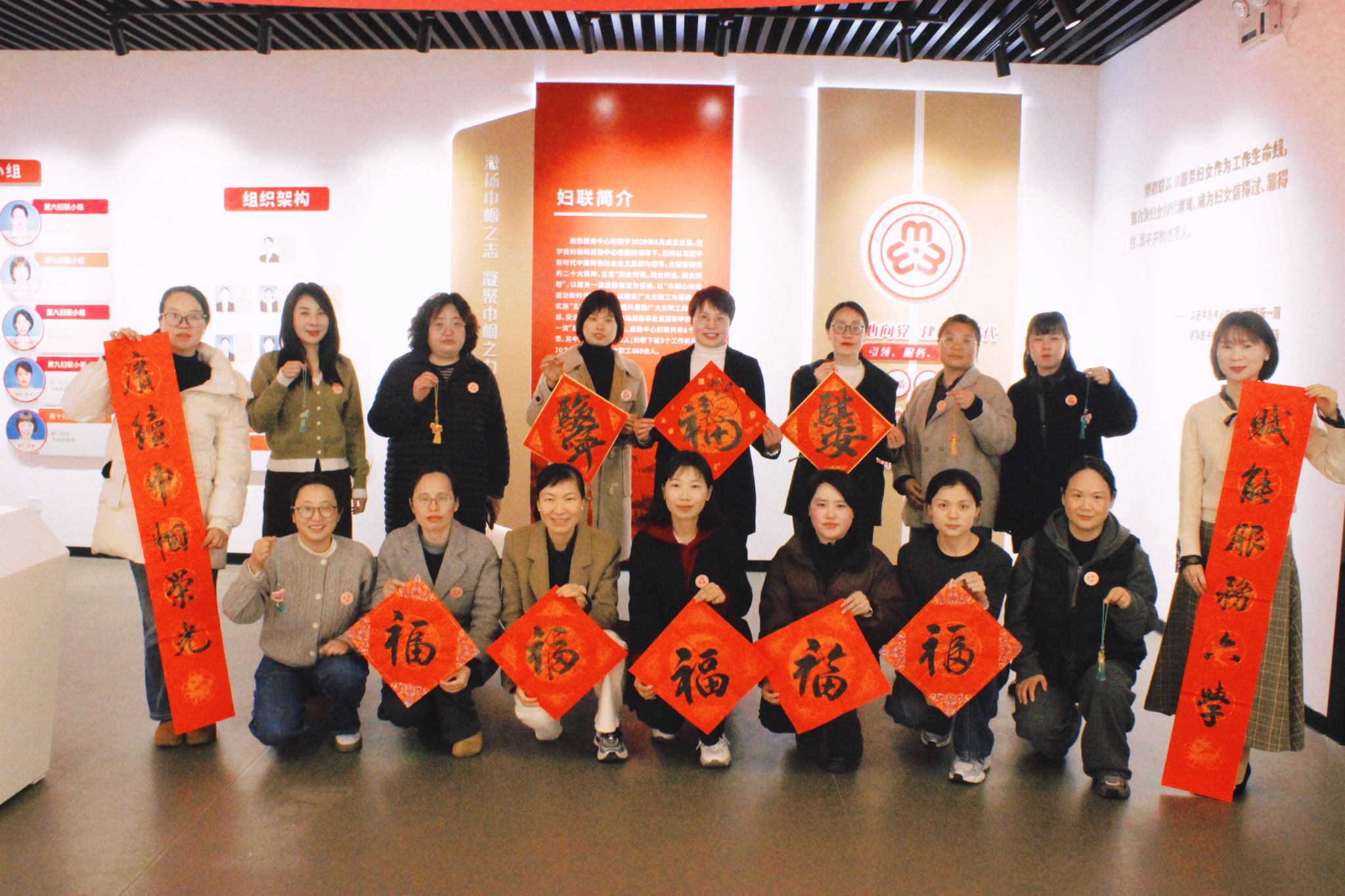 会后举行了妇联干部“纳福迎新”团建活动。妇联小组长田晓芳挥毫写春联、送“福”字;大家亲手缝制非遗宋锦挂坠,墨香与欢笑交织,年味与同心同行,为新年开局注入满满能量。