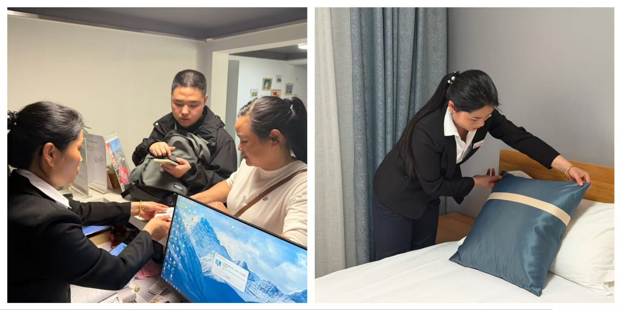 考试期间,会务行业员工为考生及家长提供包裹寄存、信息咨询、路线引导、考试物资提供等服务。专家楼员工及时清洁整理、预留充足客房迎接家长入住,主动致电尚未抵达的宾客问询行程、提供路线指引,全力保障住宿安心便捷。