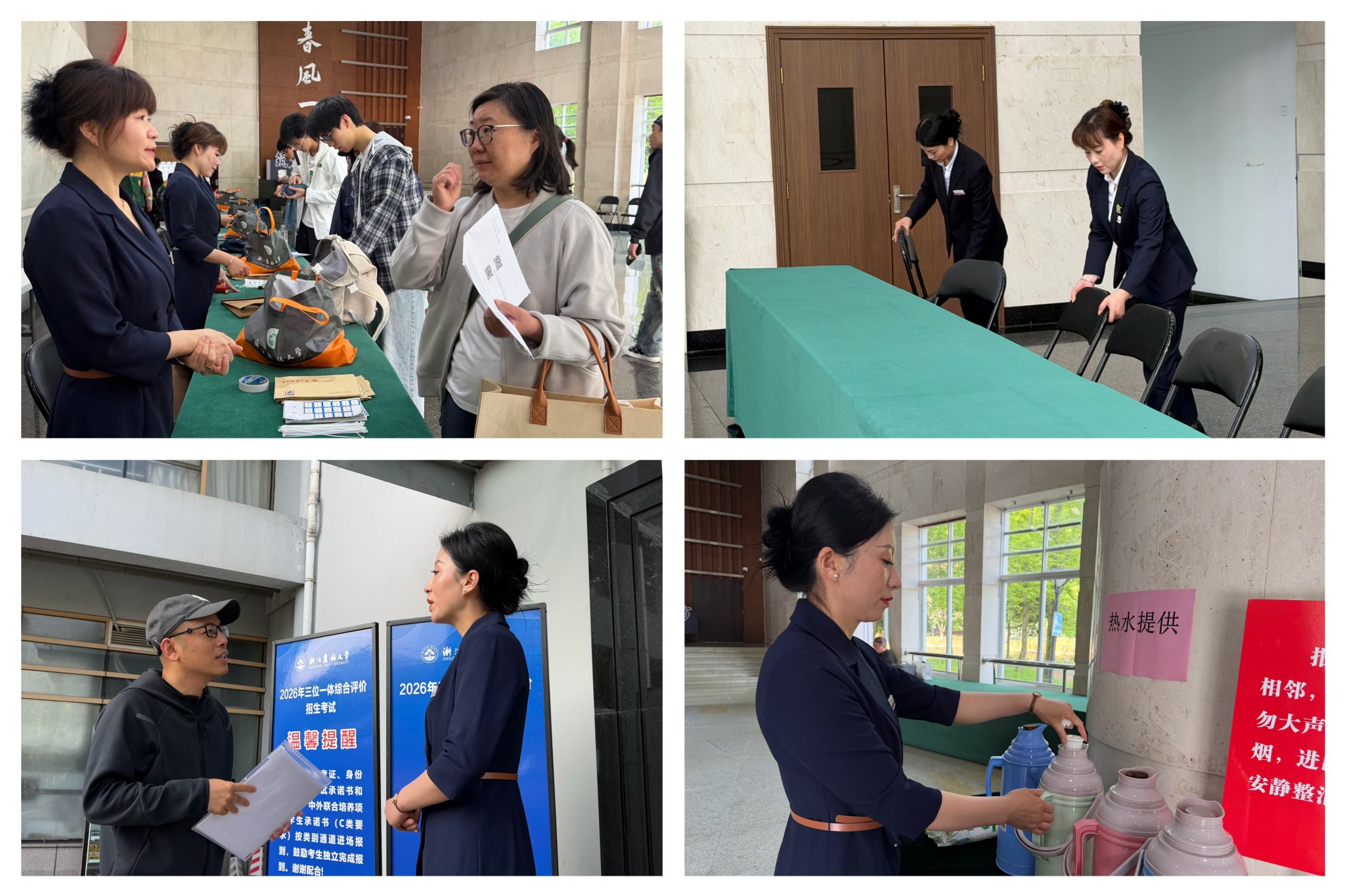 4月18日—19日,学校2026年“三位一体”招生综合素质测试工作在东湖校区进行。物业部、餐饮部、接待部、文教部各司其职、通力合作,为2000余名考生及其家长提供周到贴心的后勤服务。