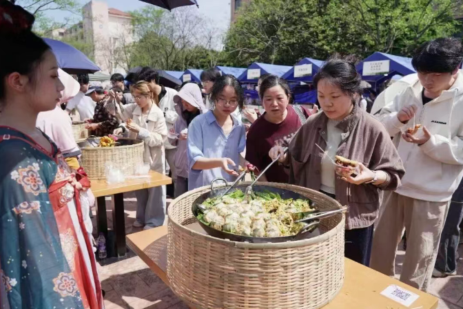 当天,浙江省“农家小吃・共富味道”市集进高校活动首发站走进浙江农林大学,同时这也是该校第四次举办笋宴。这场以笋为媒的盛宴,既展现了高校竹类研究的学科特色,更将绿色生态理念、吴越文化底蕴与乡村共富实践深度融合,为师生带来一场兼具味觉与文化的双重体验。