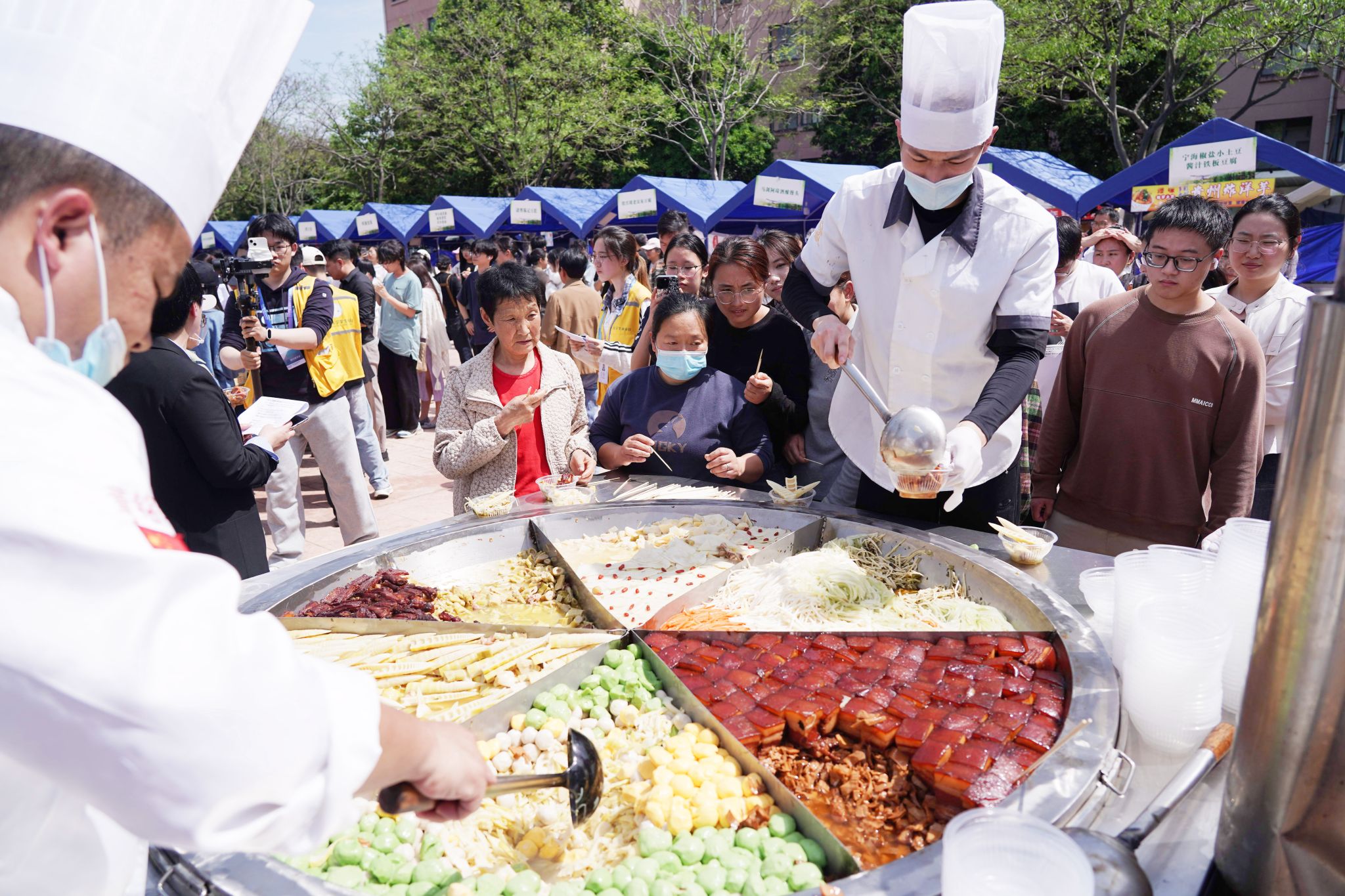 4月10日,浙江农林大学东湖食堂广场热闹非凡。第四届“笋”宴在此开宴,请全校师生免费品尝鲜笋佳肴。这是该校首次将笋宴与“农家小吃·共富味道”市集深度融合,以笋为媒串联起春日鲜味、吴越文脉与共富路径。