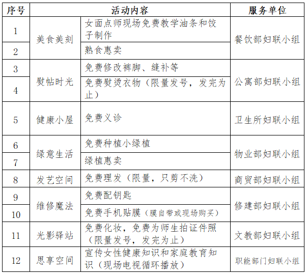 值此“三八”国际妇女节来临之际,为表达对全校女教职工和女同学的节日祝贺与诚挚敬意,后勤服务中心策划推出系列贴心福利与特色服务,旨在为广大女性师生营造温馨、便利、健康的节日氛围。具体活动安排如下:
